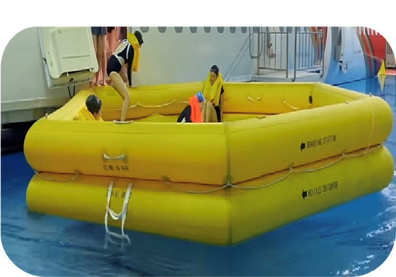 救生船又称救生筏,当飞机在水上迫降时,机组人员和乘客撤离飞机后,可登上多人救生船进行生存自救,有效延长机组人员和乘客的水上生存时间。