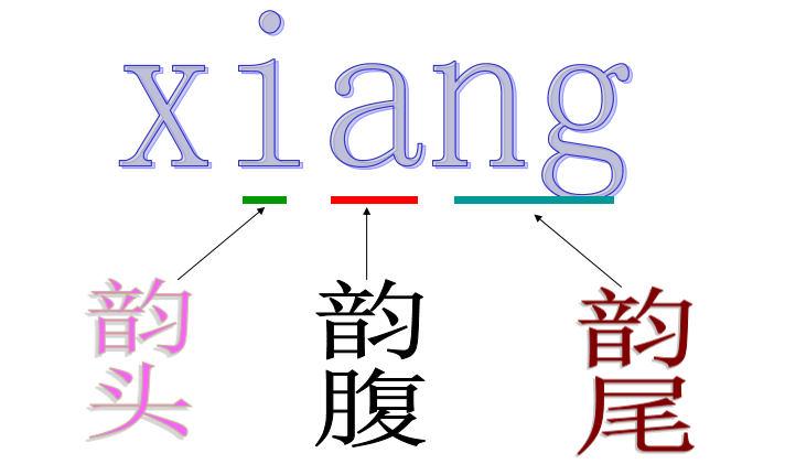 普通话韵母可分为三个部分: