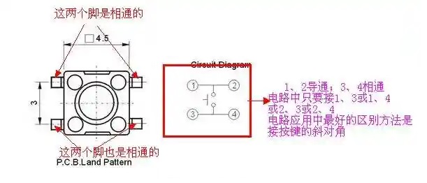 按钮开关引脚图:
