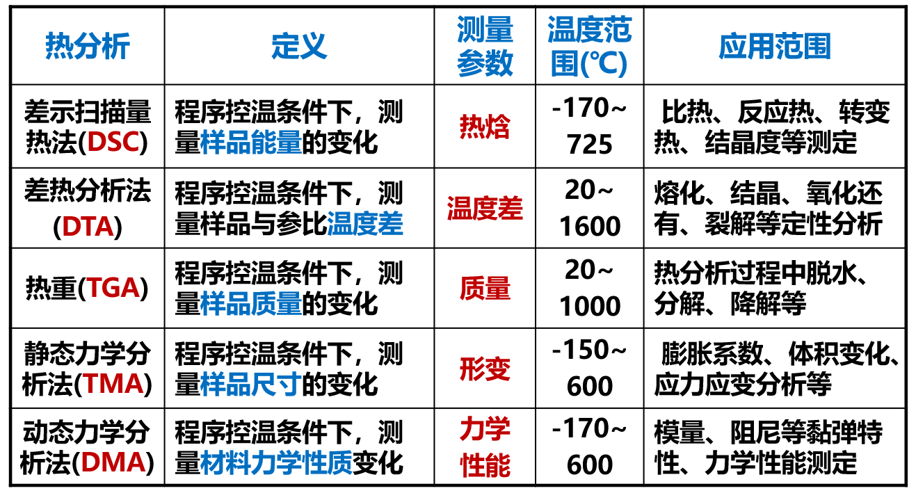 广义定义:分析物质的物质参数随温度变化相关的技术。