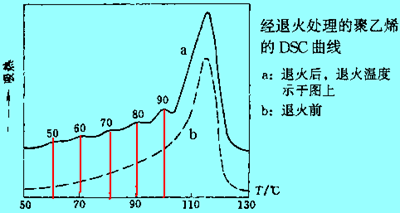 影响聚合物结晶的条件主要有结晶温度和升温速率。一般上,结晶温度越高,形成结晶越完善,熔点越高。如下图所示: