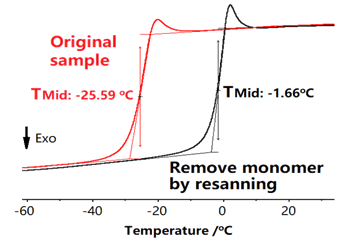 对于聚合物,由于微量水、残留溶剂的存在,固体形态以及复杂的历史效应影响,第一次扫描时常有干扰。消除干扰的方法之一就是重复扫描,将第一次扫描作为样品的预处理,再进行第二次扫描,以后的准确的结果。