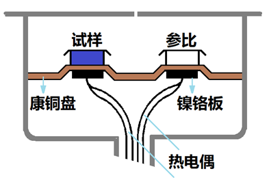 采取外加热的方式使均温块受热,然后通过空气和康铜做的热垫片两个途径把热传递给试样杯和参比杯,试样杯的温度由镍铬丝和镍铝丝组成的高灵敏度热电偶检测,参比杯的温度由镍铬丝和康铜组成的热电偶加以检测。