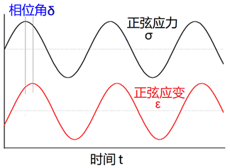 如果在聚合物上加一个正弦性的交变外力,使试样产生的应力和应变也以正弦方式随时间变化。这种周期性的外力引起试样周期性的形变,其中部分所做功以位能形式贮存在试样中,没有损耗(试样分子结构中弹性部分形变后能瞬间恢复);而另一部分所做功,在形变时以热的形式消耗掉,(试样分子结构中粘性部分形变时造成分子间的内摩擦使材料生热),于是应变始终落后应力一个相位差δ。