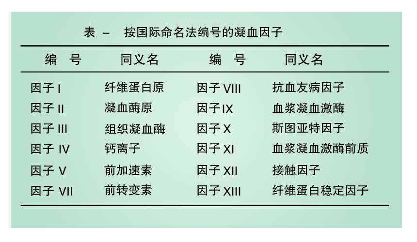 *因子VI是血浆中活化的因子Va,故不再被视为独立的凝血因子。