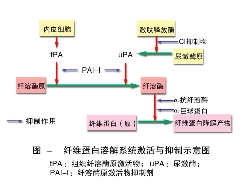 正常情况下,血凝与纤溶处于动态平衡。当血管受损,其内面有少量纤维蛋白形成时,纤溶系统激活使纤维蛋白溶解,保持血流畅通,并有利于组织修复和血管再生。若两个系统之间的平衡被破坏,即可出现凝血或出血。