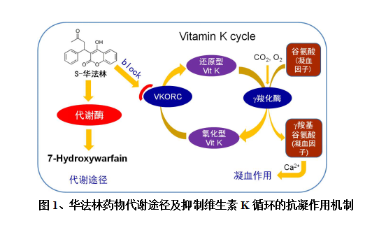 华法林为间接作用的香豆素类口服抗凝药,通过抑制维生素K在肝细胞内合成凝血因子Ⅱ、Ⅶ、Ⅸ、Ⅹ从而发挥抗凝作用。肝脏微粒体内的γ羧化酶能将上述凝血因子的谷氨酸转化为γ-羧基谷氨酸,后者再与钙离子结合,从而发挥其凝血活性。华法林的作用是抑制羧化酶,但对已经合成的上述因子并无直接对抗作用,必须等待这些因子在体内相对耗竭后,才能发挥抗凝效应,所以华法林的起效缓慢。此外,华法林仅在体内有效,停药后药效时间维持较长,直到维生素K依赖性因子逐渐恢复到一定浓度后,抗凝作用才消失。