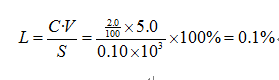 由于供试品(S)中所含杂质的量是通过与一定量杂质标准溶液进行比较来确定的,杂质的最大允许量也就是杂质标准溶液的浓度(C )与体积(V)的乘积,因此杂质限量(L)的计算可写成下式: