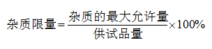 杂质的限量通常用百分之几或百万分之几来表示。对危害人体健康,影响药物稳定性的杂质,必须严格控制其限量。如砷对人体有毒,其限量规定较严,一般不超过百万分之十;重金属(其中以铅为主)易在体内积蓄,引起慢性中毒,并影响药物的稳定性,允许存在的量也很低。药物中杂质限量的制订除了根据杂质本身的性质外,还要根据生产所能达到的水平并参考各国药典的惯例。药物中杂质的限量可按照下式来计算: