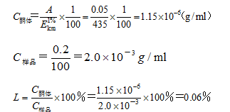 式中,A为吸光度,E为吸收系数,C为被测物质溶液的浓度,L为液层厚度。