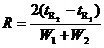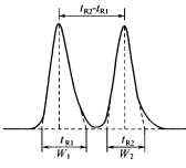 为相邻两峰中前一峰的保留时间;W1及W2为此相邻两峰的峰宽。