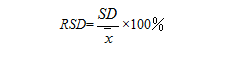 由于SD的大小与所使用的单位以及测定结果数值的大小有关,所以常常使用相对标准偏差来表示精密度。相对标准偏差的计算公式为:
