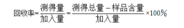如不能得到制剂的全部组分,也可将已知量的测定组分加入一定量已知含量的样品中,照验证方法测定,根据测定结果按下式计算回收率: