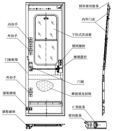 对轨道交通车辆而言,司机室侧门一般采用折页门或手动塞拉门,塞拉门具有良好的密封性、隔热性和隔声性。塞拉门可分为内塞拉门和外塞拉门。城市轨道交通车辆一般采用外塞拉门即车门由外塞入车门口处,使之关门密封。单扇手动塞拉门系统适用于最高时速不大于100km/h的地铁轻轨客车。
