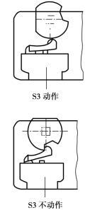 c.门切除行程开关S3.该行程开关用于检测车门是否切除。当单个车门发生电路检测故障时(通常是S1,S2接触不良造成的),可通过方孔钥匙切除该车门,S3行程开关的触点接通将旁路该门的S1,S2行程开关。其组成结构如图4.15所示。