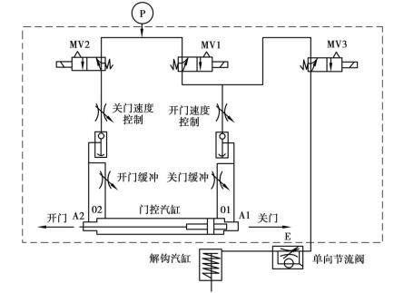 a.“关门”电磁阀MV2:在“关门”电磁阀的通常状态下(即失电),车门驱动风缸排气。
