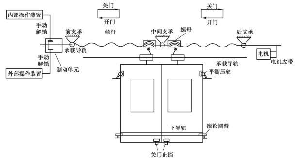 当司机按下关门按钮,关门吸纳后通过列车线向每个车门发出。每个车门的车门控制单元收到关门信号后将控制电机驱动丝杠从而使门页关闭并锁好。