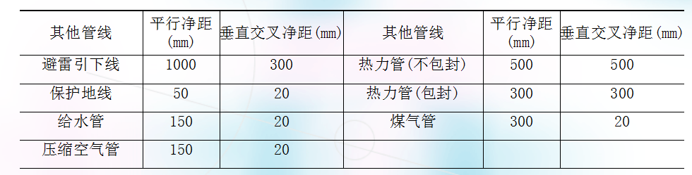 (2)综合布线系统缆线与配电箱的最小净距宜为1m,与变电室、电梯机房、空调机房之间的最小净距宜为2m;