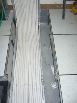 ②沿着所设计的路由,打开天花板,用双手推开每块镶板,多条4对线很重,为了减轻压在吊顶上的压力,可使用J形钩、吊索及其他支撑物来支撑;