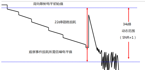 峰-峰值(峰值)动态范围:背向散射电平初始点电平值与噪声峰值电平之差