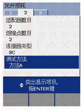 设置适配器数目、熔接点数目、连接器类型、测试方法。适配器数目是在设置基准后添加光纤链路的适配器实际数量,熔接点数目是光纤链路的实际熔接点数量,连接器类型是布线的连接器类型,若连接器类型不详,请选用常规。