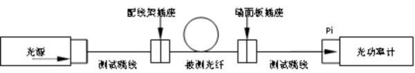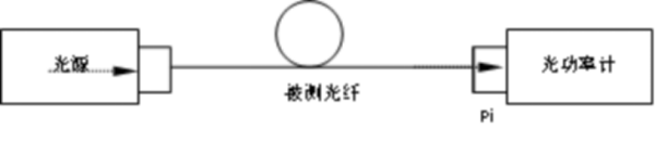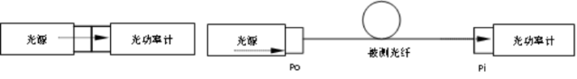 衰减测试最基本原理如左所示。首先测出光源输出的功率Po。测量方法如右图所示,测出光功率Pi,则光纤链路衰减值=Po-Pi。
