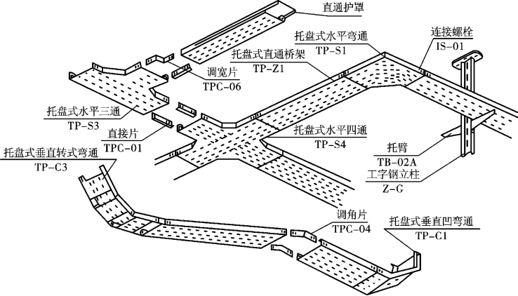 桥架按结构可分为梯级式、托盘式和槽式3类。
