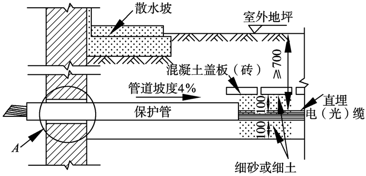 (2)地下管道。地下管道既是一个通道,又是一个保护管道,是楼宇间干线布线的首选方案。这种敷设方案可以保护光缆,防止潮湿和其他外界因素的破坏。