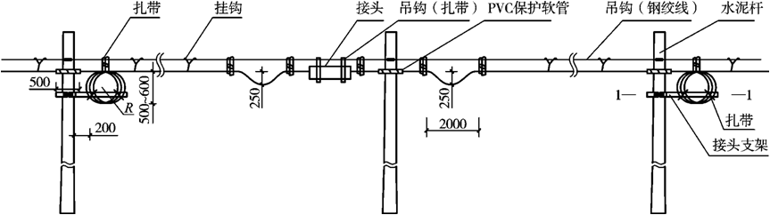 (2)如果光缆沿墙面敷设,只需每1 m系一个缆扣或装一个固定的夹板。