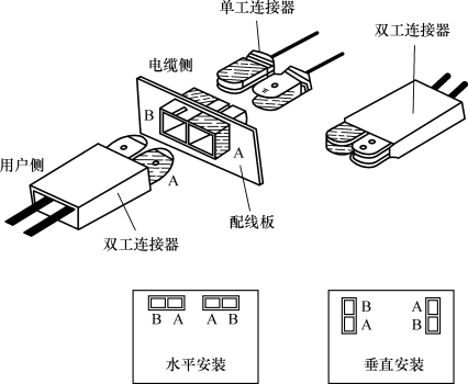 ② 当用单工光纤连接器时,对连接器应做上标记,表明它们的极性: