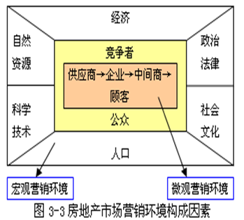 房地产营销环境指与房地产企业营销活动有潜在关系的所有外部力量和相关因素的集合,这些力量和因素是影响房地产营销活动及其目标实现的外部条件