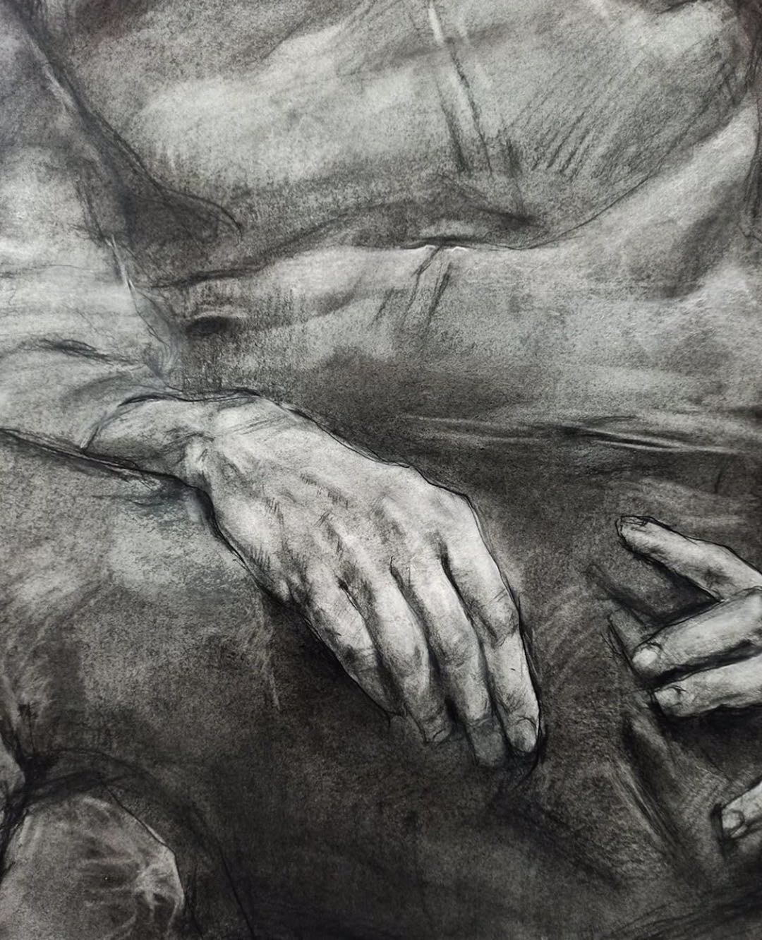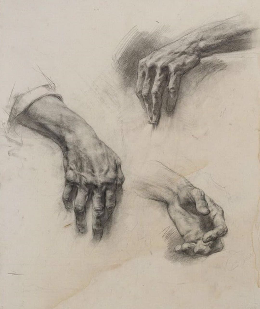 掌握手的结构和表现手法,注意手和衣褶的研究,衣褶的造型规律,及通过衣褶表现的内在人物结构、织物色调和质地,抓住人物躯干的动态变化,(如:头、颈、胸、髋等)