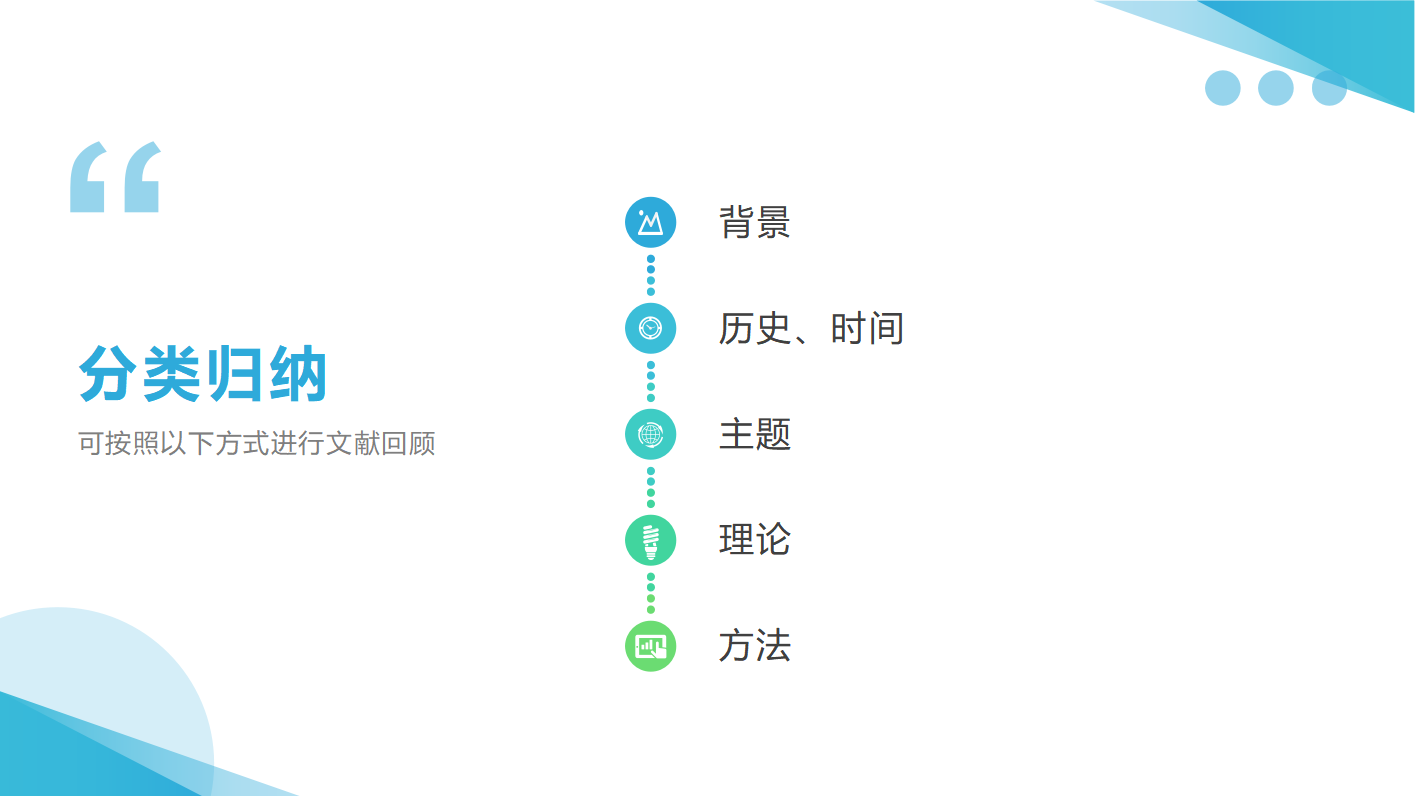 搜索顺序:博士论文里的综述、中文综述文章、英文综述类文章、其他