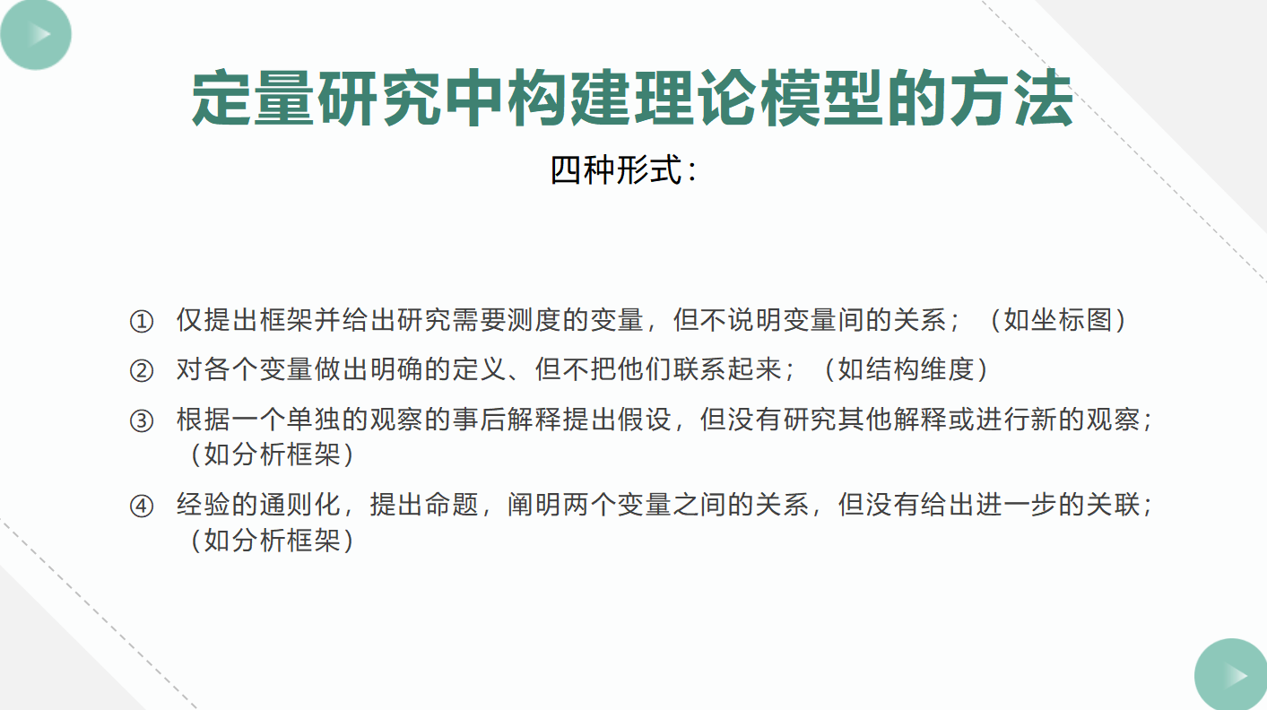 4.经验的通则化,提出命题,阐明两个变量之间的关系,但没有给出进一步的关联;(如分析框架)