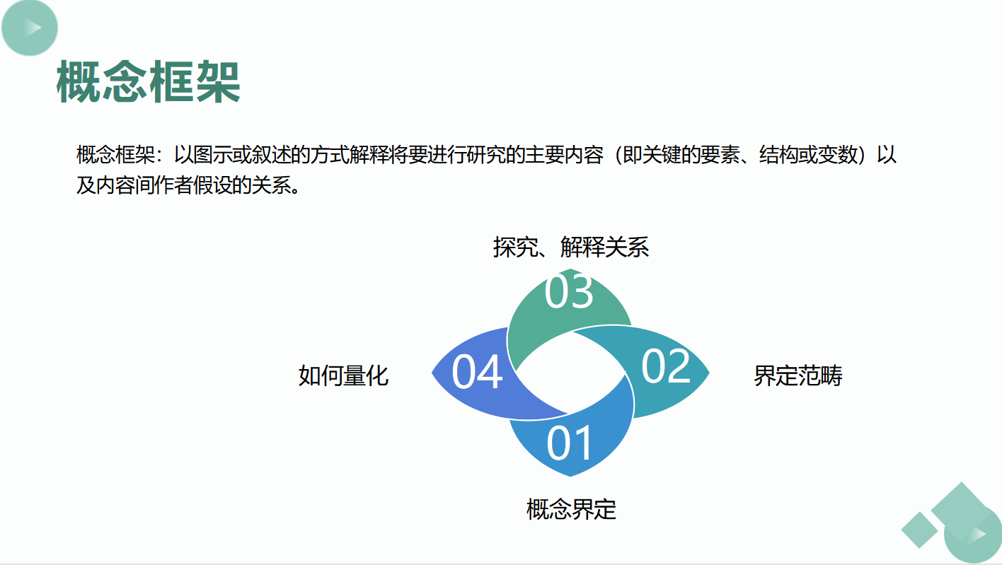 对各个变量做出明确的定义、但不把他们联系起来;(如结构维度)
