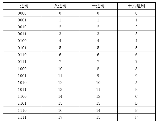 2. 常用数制的对应关系:常用数制之间的关系如下表所示。