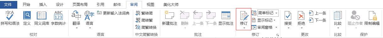 单击“审阅”菜单下“修订”组中的“修订”按钮,即可使文档处于修订状态,如图所示。单击“修订”按钮,可以关闭“修订”状态。