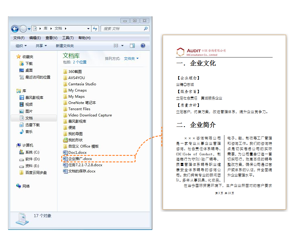 ,都可以打开“另存为”对话框。在“保存位置”下拉列表中选择保存文档的驱动器或文件夹;在“文件名”下拉列表中输入文档的文件名;在“保存类型”下拉列表中选择文档的保存类型,默认为“Word文档(*.docx)”类型。