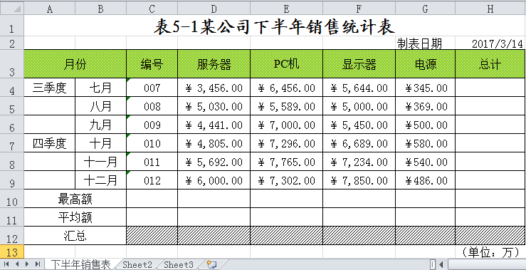 建立一张Excel表——工资表