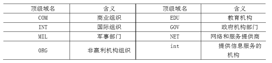 顶级域名,例如,CN代表中国、US代表美国、JP代表日本、FR代表法国、AU代表澳大利亚、CA代表加拿大、UK代表英国,其中美国的国家域名US 可以省略。