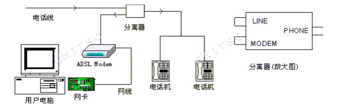 ADSL称为非对称数字用户环路,在普通电话线上进行高速的数据传输。