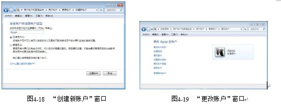 步骤4:在“创建新账户”窗口中,输入新账户名,并选择账户类型:标准用户或者管理员,如图4-18所示。