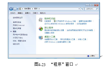 步骤2:在“程序”窗口中,单击“打开或关闭Windows功能”超链接,如图4-23所示。