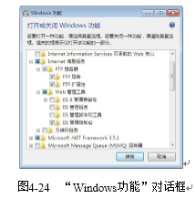 步骤3:在弹出的“Windows功能”对话框中,选择“Internet信息服务/FTP服务”选项,如图4-24所示,单击“确定”按钮,完成组件添加。