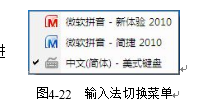 单击语言栏,在弹出的输入法切换菜单上选择需要的输入法,如图4-22所示。