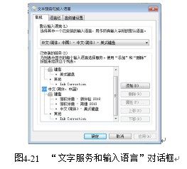 步骤4:在弹出的“文字服务和输入语言”对话框中,如图4-21所示,选择“语言栏”选项卡,点击“停靠于任务栏”或者“悬浮于桌面上”选项,即可完成语言栏的显示。
