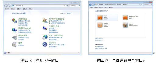 步骤2:在弹出的“控制面板”窗口中,如图4-16所示,点击“添加或删除用户账户”超链接。