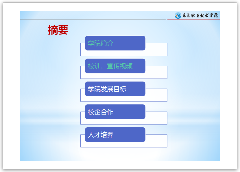 为了使幻灯片的播放更灵活,可以为文字或图形对象设定超链接跳转,只要单击相关的对象便可以直接进入相应幻灯片,这种人性化的设计使得制作的幻灯片显得更专业,同时还能让演示文稿具有一定的交互功能,使用更加灵活。