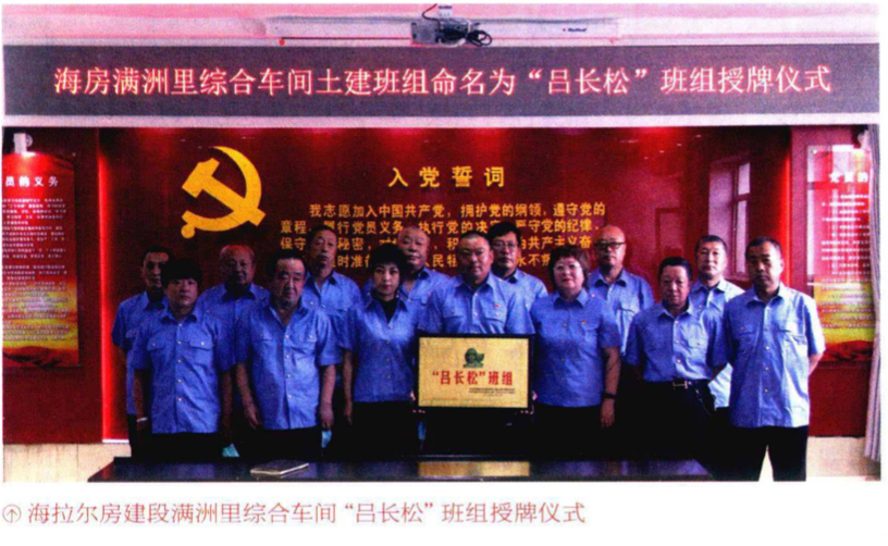 1946年,呼伦贝尔率先解放,33岁的吕长松告别了打零工的生涯, 成为一名铁路职工。从1948年起,吕长松担任嵯岗给水所给水司机长, 也就是工长。1949年新中国成立后,吕长松加入中国共产党。新中国 的成立,让嵯岗给水所职工无比激动,大家热烈地讨论一个问题:“要 怎样做国家的主人?”工长吕长松说:“咱翻身不能忘本,应该艰苦 奋斗、勤俭节约,让我们的国家富强起来!”他的话得到工友们的热 烈响应。当时,嵯岗给水所只有9名职工,设备陈旧落后、管理混乱。