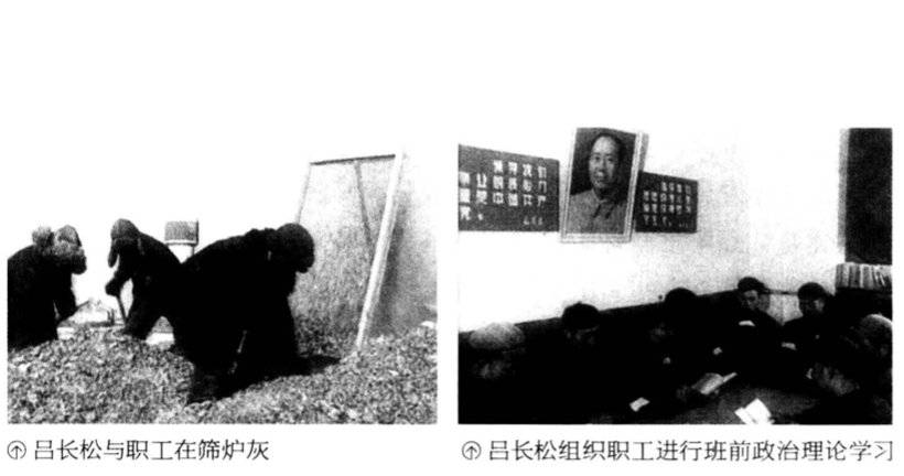 一个不向国家要燃料的集体 一次,吕长松看到一名妇女在用自燃的炉灰渣煮饭,受此启发,他们开始用炉灰渣子烧锅炉。用炉灰渣子烧锅炉需要用大眼筛子把炉 灰渣子先筛一遍,选出其中没烧透的煤矸石,再拿小眼筛子过一遍, 把焦块拣出来。这可是个重体力活。20吨炉灰,才能筛出5吨炉渣, 只相当于1吨原煤的发热量。每天要将60吨的炉灰筛两遍,才能筛够 一天烧的炉渣。就这样,他们日复一日、年复一年地烧炉渣。冬天, 寒风刺骨,当汗水湿透棉衣,大家身上就结满了白花花的冰霜,一个 个像雪人;夏天,烈日当空、尘土飞扬,汗水和灰土混在一起,一个 个又变成了从土堆里爬出来的泥人。